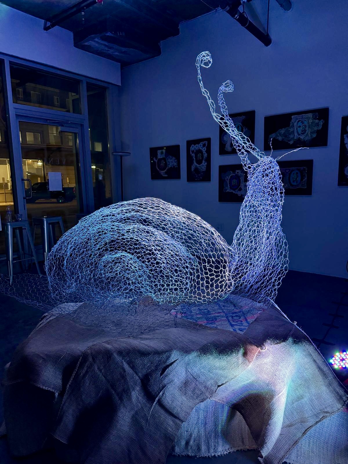 This exhibition illustrates how the memories of the snail, mediated by fungi, bridge the past and future, continuously transforming into new forms.